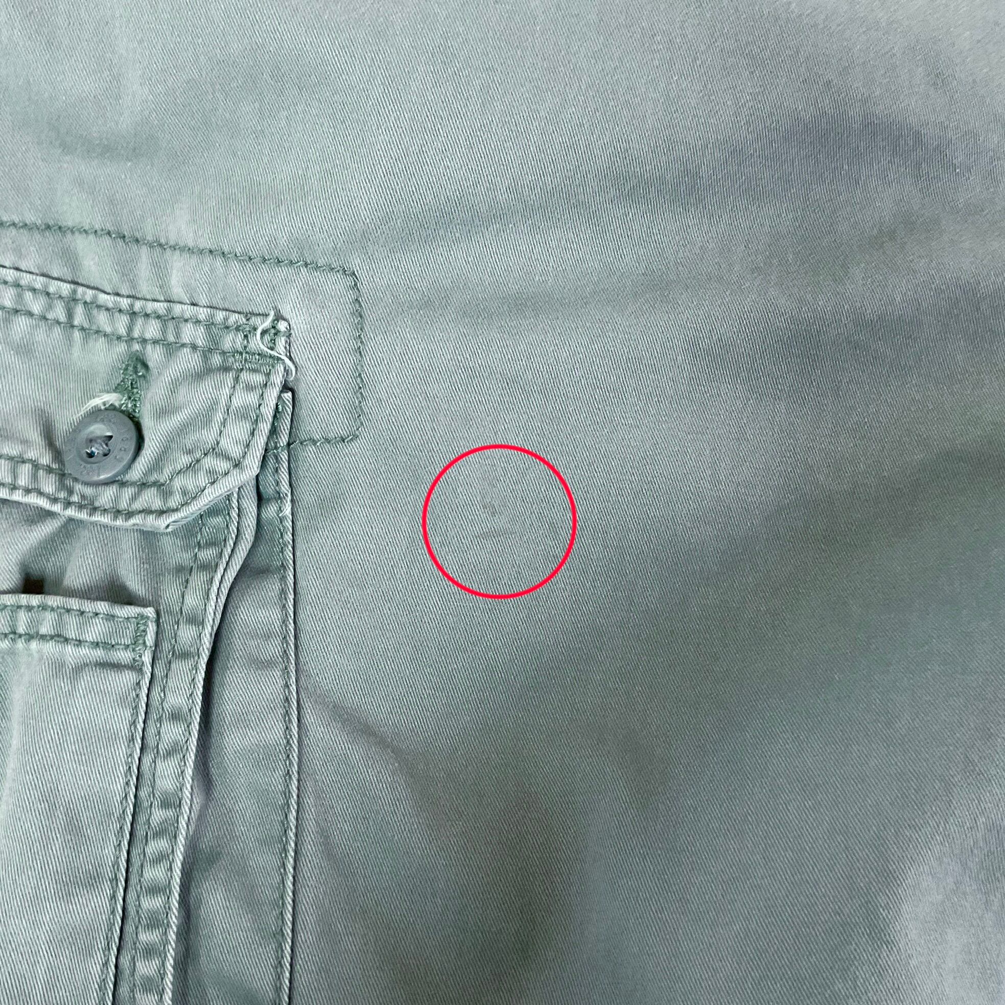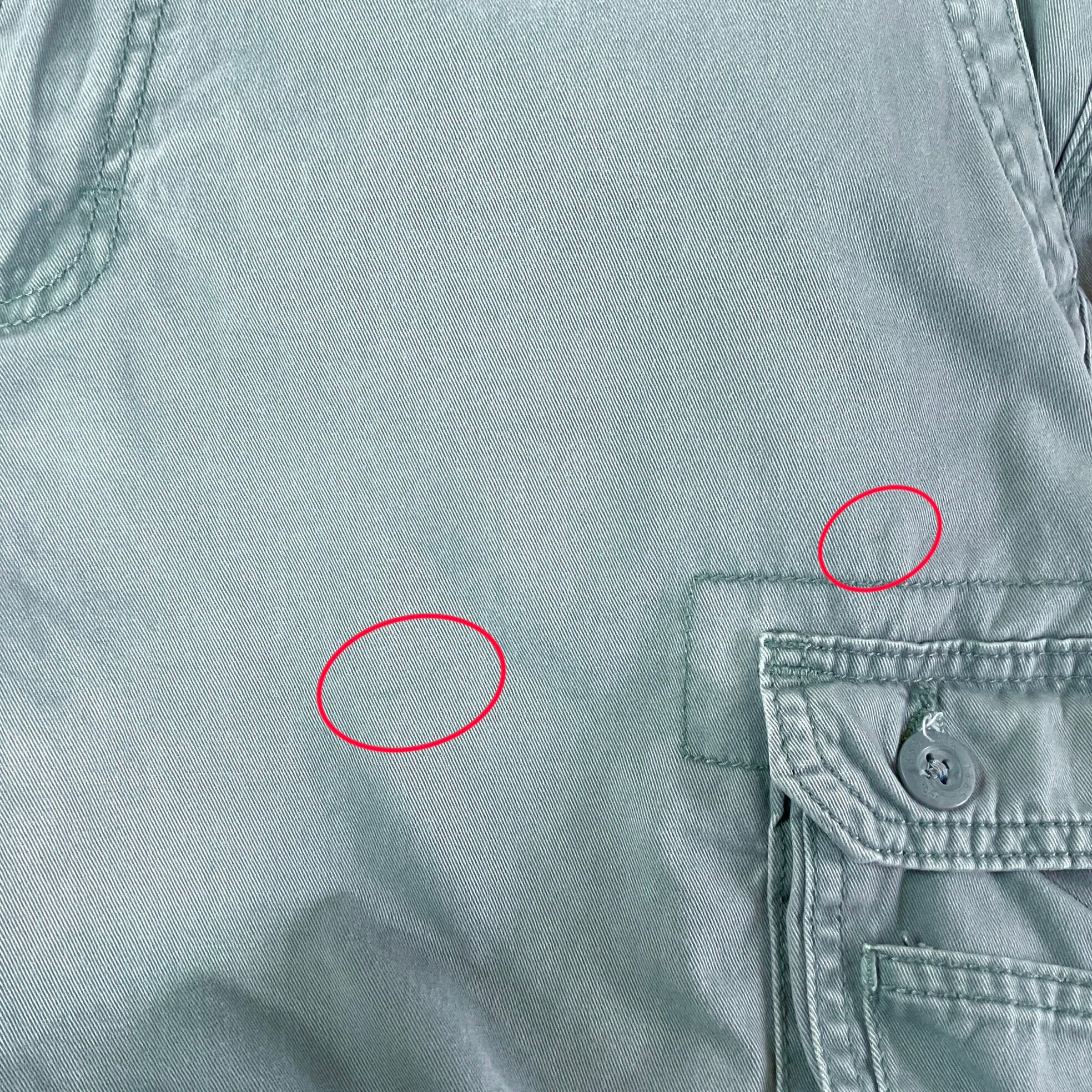 薄いシミがあります。(商品画像4,5枚目赤丸参照)